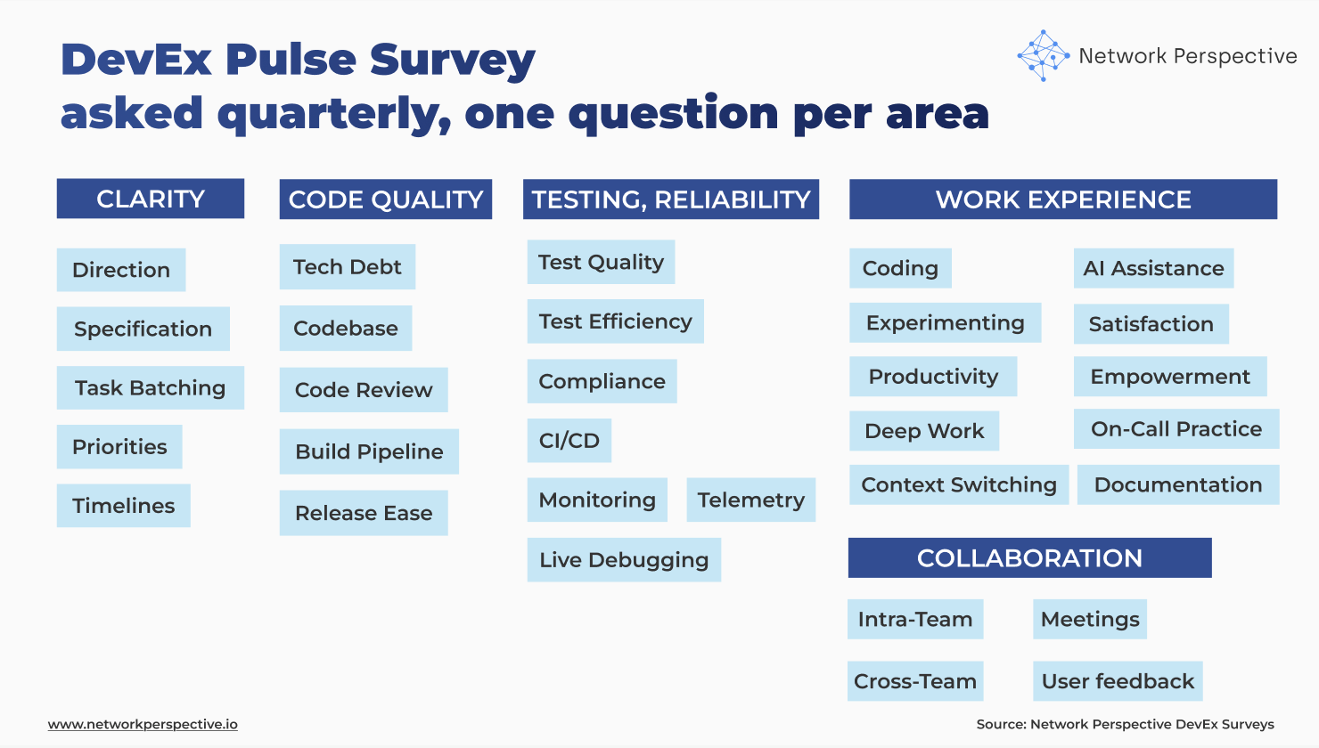 DevEx Pulse (one question per area to track overall delivery performance) and DevEx Deep Dive (focused diagnostics when something needs attention).